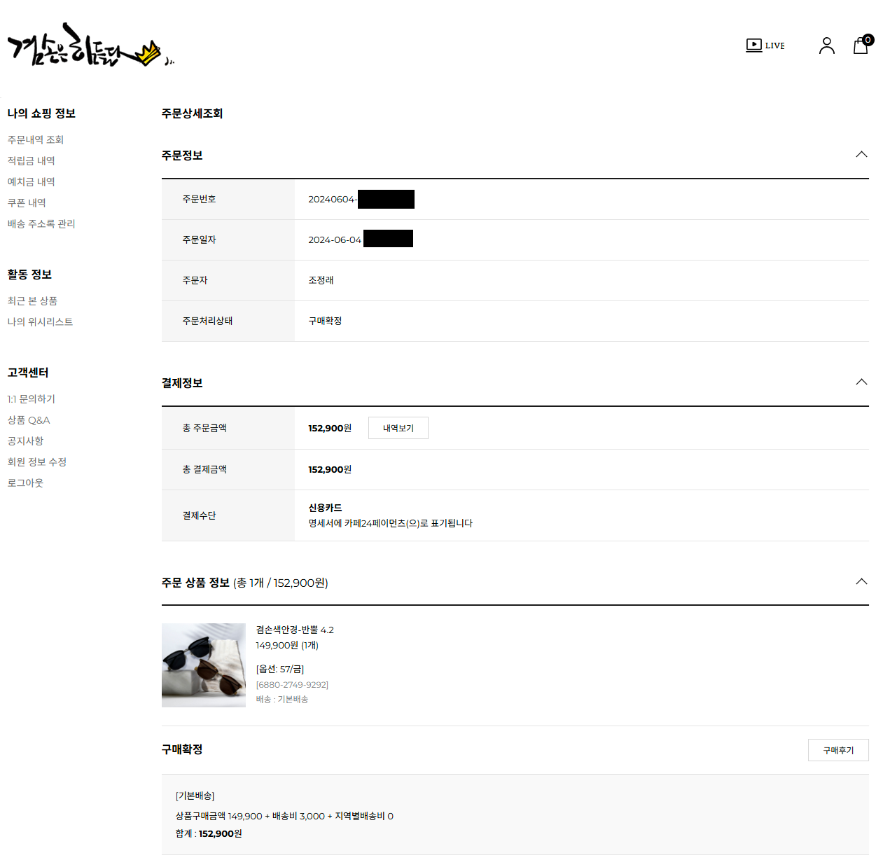 말바꿈 제일 싫어하는데, 인정도 안하고 배송하면서 카드에 겸손색안경, 썬글라스란 단어가 있으니...