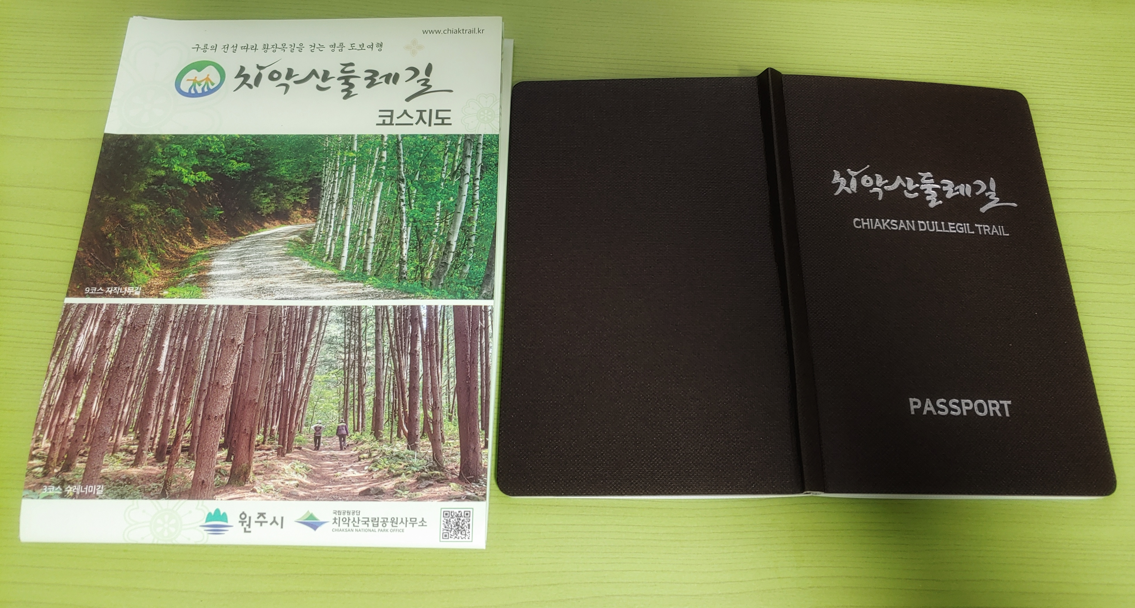 이정도면 되는데, 패스포트란다. 의미가 정말 다르지 않나! 나라간 입국할 때 허가의 의미로 찍는 것과 그 구간을 지나가면서 기념이 될만한 곳을 찍는 것이... 인증수첩 정도면 되는데, 표지는 치악산 둘레길 이란 멋진 디자인에 아래엔 CHIAKSAN DULLEGIL TRAIL 에 아래에 PASSPORT란다.