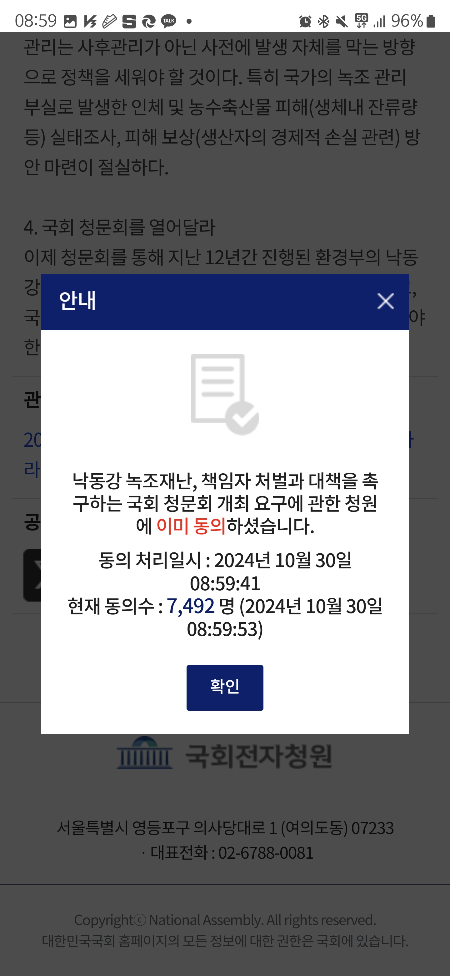 국회 청문회 개최 요구 - 낙동강 녹조재난 본문