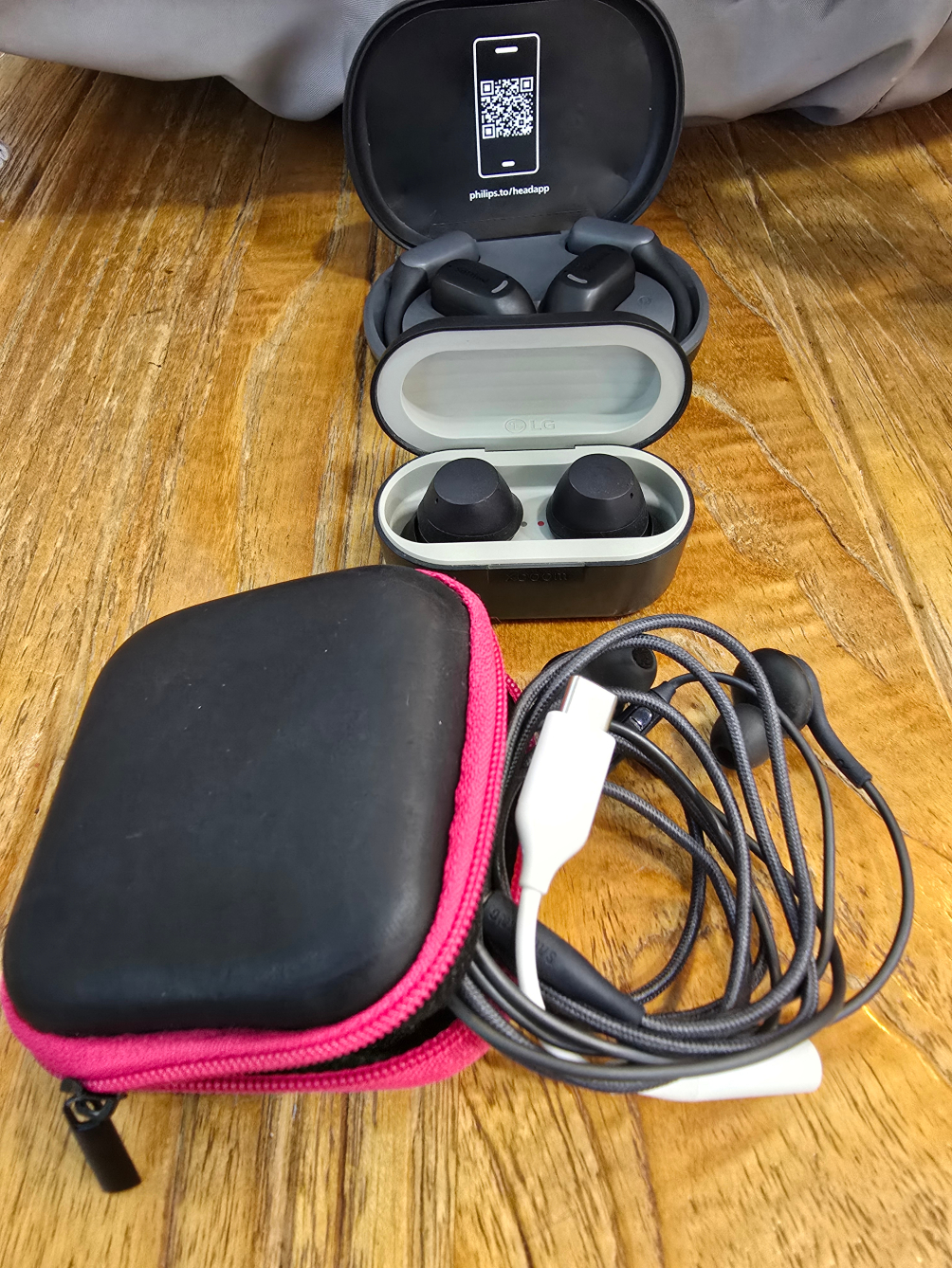 헤드폰은 비싸게 장만했어도... 거의 사용을 안하고 있고... 무선 이어폰은 많이 있는데, 노이즈 캔슬링 되는 LG 이어폰과 달릴 때 깜빡이는 필립스 이어폰, 그리고 유선 이어폰으로 형이 사용하던 삼성 연결 케이블이 있어서 가지고 다님
