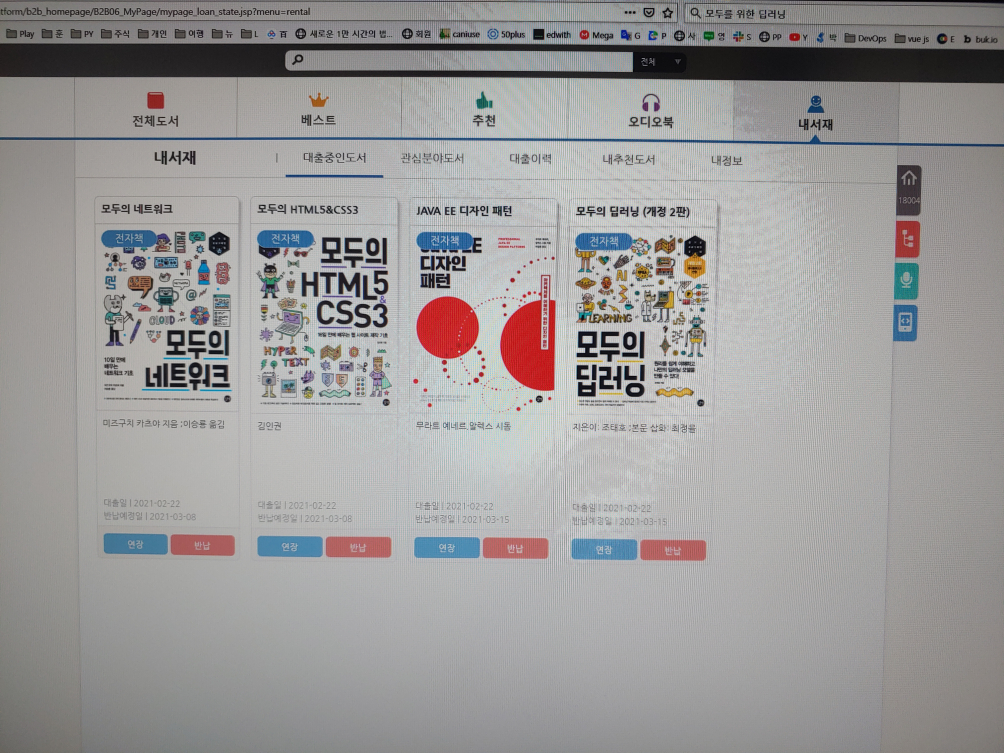 서울카드 만들고 이용 안하다가 메일 보고 앱실행 중에 광고 덕에 전자책 구독서비스를 이용해보니 모두의 시리즈가 있었다. 일독 시작. 초창기 파이썬 입문서는 구입까지 해서 읽다가 나에겐 너무 쉬워서 건너뛰었는데, 요즘 인공지능, 딥러닝 관련해 읽어보고자 한다.