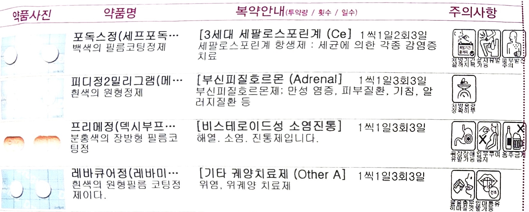 그렇게 내시경 후에 또 진료비 내고, 약 처방전을 받아 약국가서 약 7일치를 받았다. 그것도 캡쳐해 올려놯야지... 위 약엔 귀가 부어 항생제를 처방했다는데, 위관련 약은 어땠는지 .. 기억도 안나네... 3초 기억을 어찌하리오.