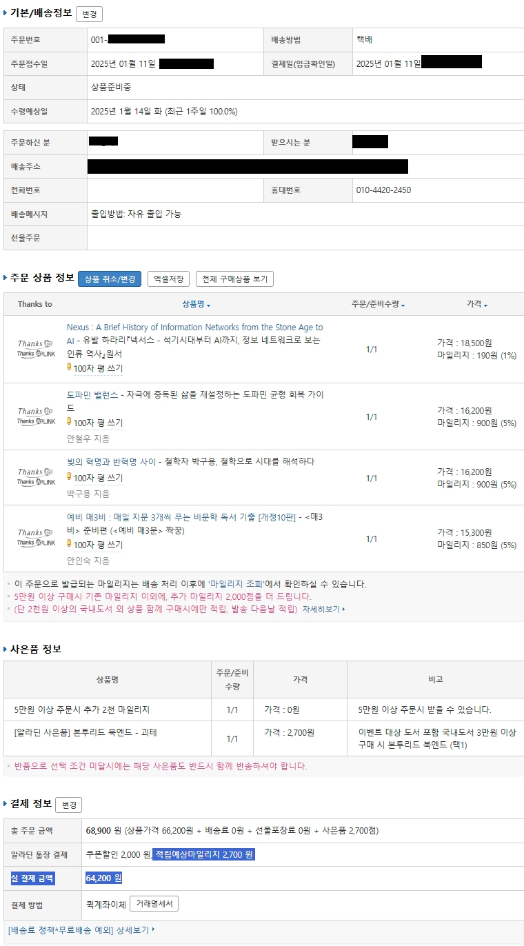 | 알라딘 회원 등급 오랜만에 Platinum! (3) | 2025.01.23 |