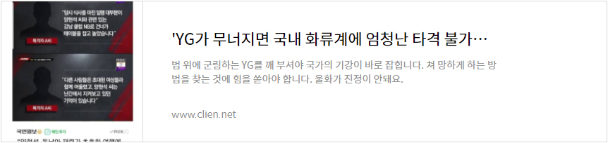 'YG가 무너지면 국내 화류계에 엄청난 타격 불가피'