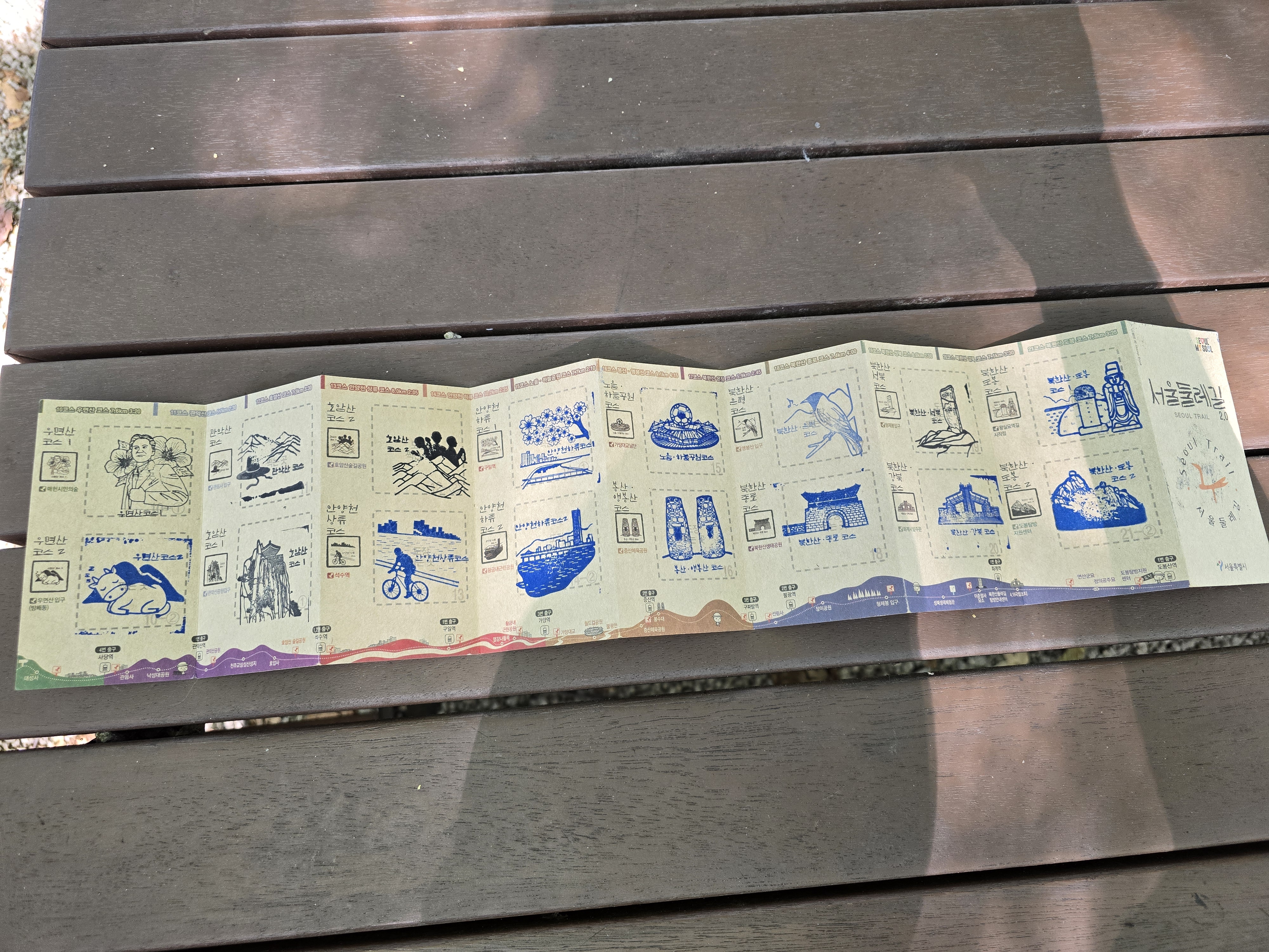 v1.0 스템프북을 부산에 두고와서 v2.0으로 새롭게 시작했습니다. 걷기 시작한 후로 날씨가 아주 좋았고, 일을 하지 않고 있어 여유가 있어, 단기간에 완보한 것 같습니다. 9월22일(일) 부터 10월04일(목) 날짜간격은 13일(처음 31도였는데, 20도이고, 오늘 10/4 아침은 15도 였습니다)이고, 걸었던 날은 아홉번 만에 완료했습니다.
