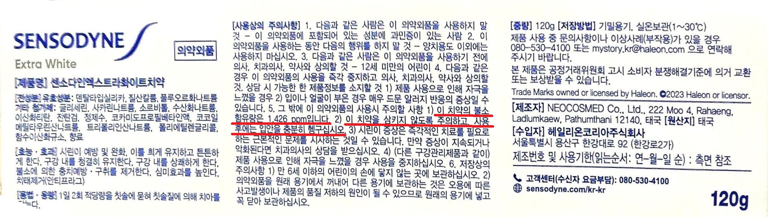 센소다인 엑스트라 화이트 치약 의약외품 120g