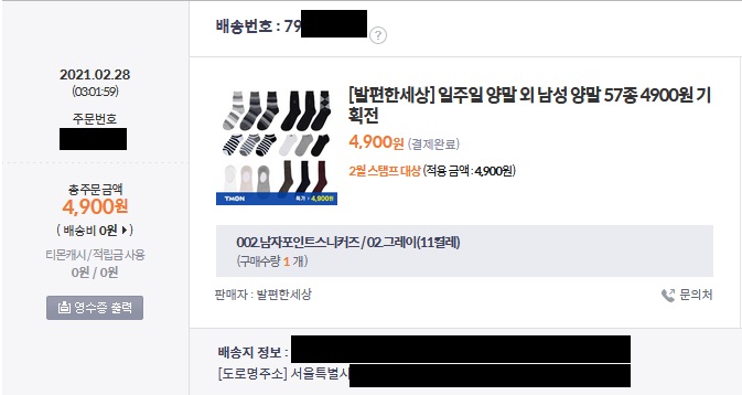 양말 11켤레에 4900원. 배송비까지 0원이라니 믿기 않았으나 해봤는데, 품질도 괜찮고 좋았다.