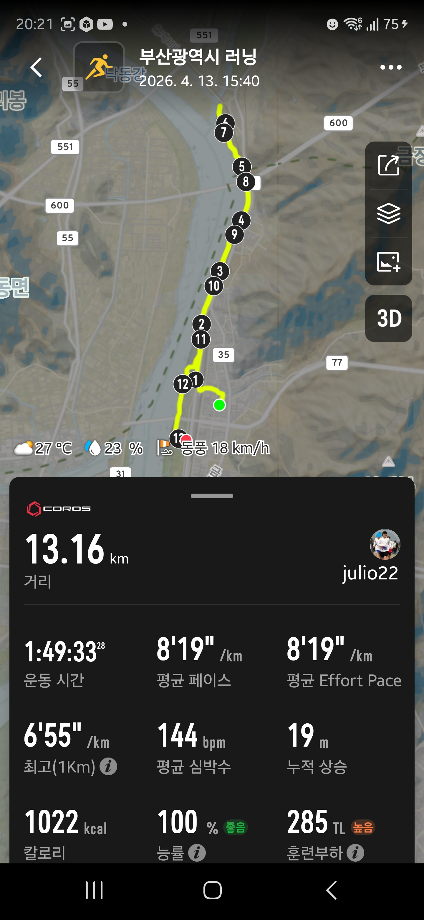 정말 천천히 달렸고, 호흡으로 심박수가 삼성와치에서 왜 그렇게 높게 나타나는지 그래도 코로스에 나타난 값도 낮지는 않다고 보는데... 왜 일지.. 우선은 코로나 예방주사때문일지도...(이것은 카더라 일수 있으나... 그래도...)