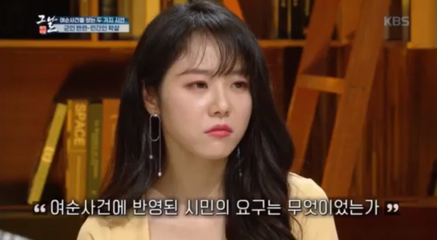 - 진행: 최원정 - 음 정보 전달자 역할만 하는 듯. 명작 스캔들 등 기억나는 프로그램도 있지만, 이젠 검색하면 다 나오는 시대에?? 어쩌면 중고등학생들 국사 시간 암기 도움용이라 이렇게 길게 이어나가는 건 아닐지... 하지만 이 프로그램이 주는 효용은 아주 많다. 잠시라도 그 시간대로 돌아가 , 내가 거기에 있었다면, 2020년 4월 21일에 '결정적 하루인 10월19일'를 반추해 봄으로서 많은 다양한 것들을 알 수 있을 테니. 바람은 진행자는 역사저널을 오래 진행했으니, 모르는 체 하기보단 이해를 높여주는 그 무엇이 있길. 이번 회에서는 국군 내에 좌익 색출 시 총살하는, 미군정 영상에 오정해 씨와...... 그 부분은 좋았다만. [이전 편에 다루었겠구나! 검색해봐야지!]