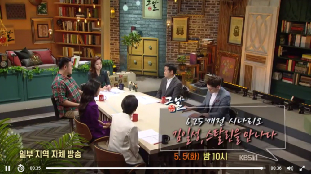 사족 이시원 배우는 소련이나 중국 탓을 하더라! 나라가 약하면 그렇게 되는 것인데... 탓 하지 않았으면... 했다. 이해는 되나, 스탈린이 피를 묻히고 싶지 않은 이유는 그만큼 전쟁참상을 잘 알고 있었던 것이고, 전쟁하고 싶어한 사람은 여기 프로그램 설명으론 김일성인데, ... ... 김일성이 전쟁을 짧은 시간에 끝날 것으로 본 것 그것이 제일 큰 패착이고, 6.25 발발전 일년 정도 산발적 국지전이 너무나 많았기에... 전쟁이 뭔지 몰라 전쟁을 일으킨 것. 그것을 제대로 이해했으면...