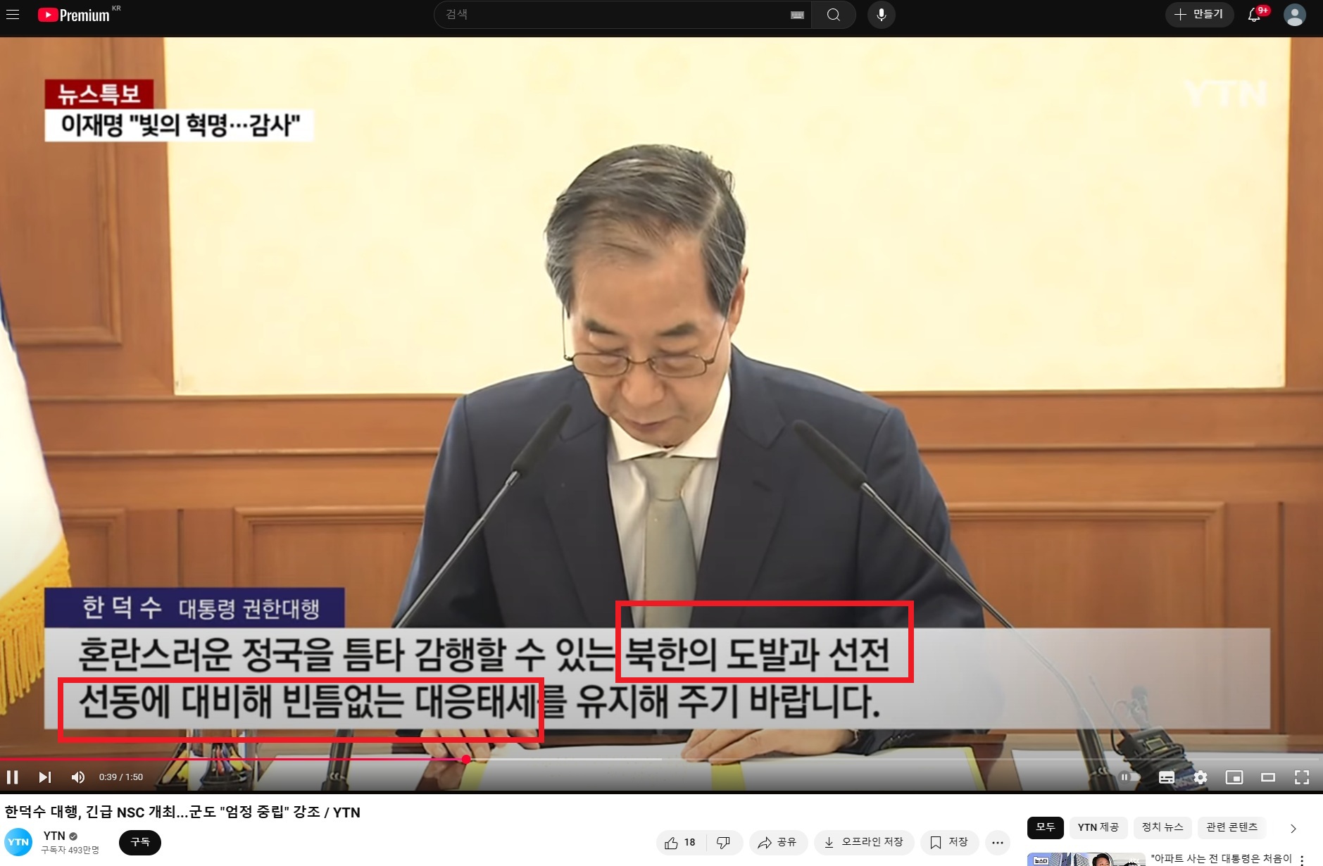 윤석열 내각은 그대로 이고, 외환죄는 수사가 제대로 되지 않아 기소하지 못했다. 지나온 3년 간을 한덕수 총리도 알고 있는데, 선거 기간 동안 북한을 자극해 외환을 유도할지 모른다는 의견을 유튜브에서 보고 그럴 수 있겠단 생각이 들었다.