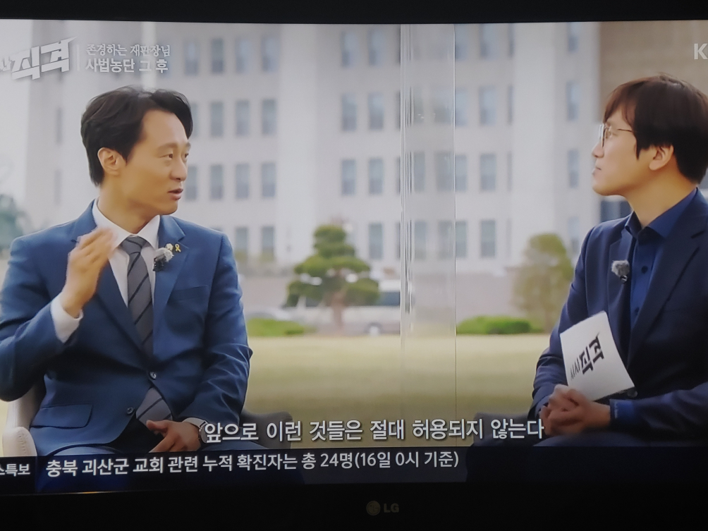 사회자가 마음에 들지 않지만, 채널 바꾸다 이탄희 국회의원이 나와 이야기 하는 것을 봤다.