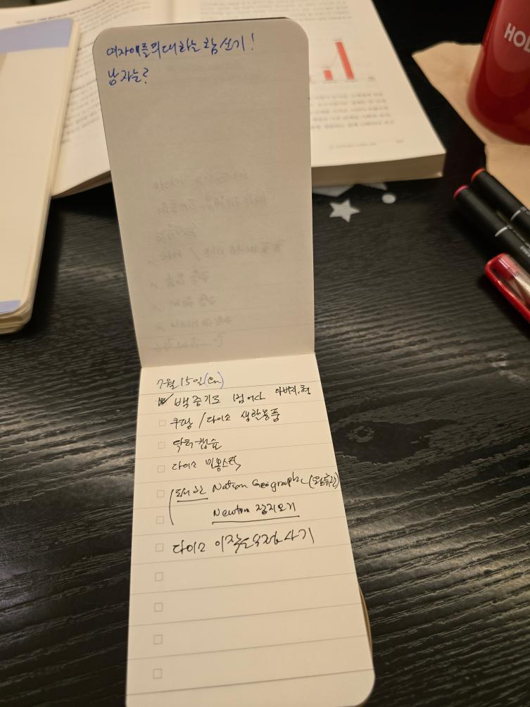 거기에 아래 보면 알겠지만, 밴드를 자주 사용하다 보니 그냥 떨어져 버렸다! 내 사용이 가혹한 환경일 수 있으니... 이건 개개인 마다 다를 수 있으나, 아래 함께 찍은 사진을 보면 사이즈도 비슷하고, 다이소 것은 위엔 여백지, 아래는 투두 리스트 두종류로 되어 있어 나름 좋은 것 같다.