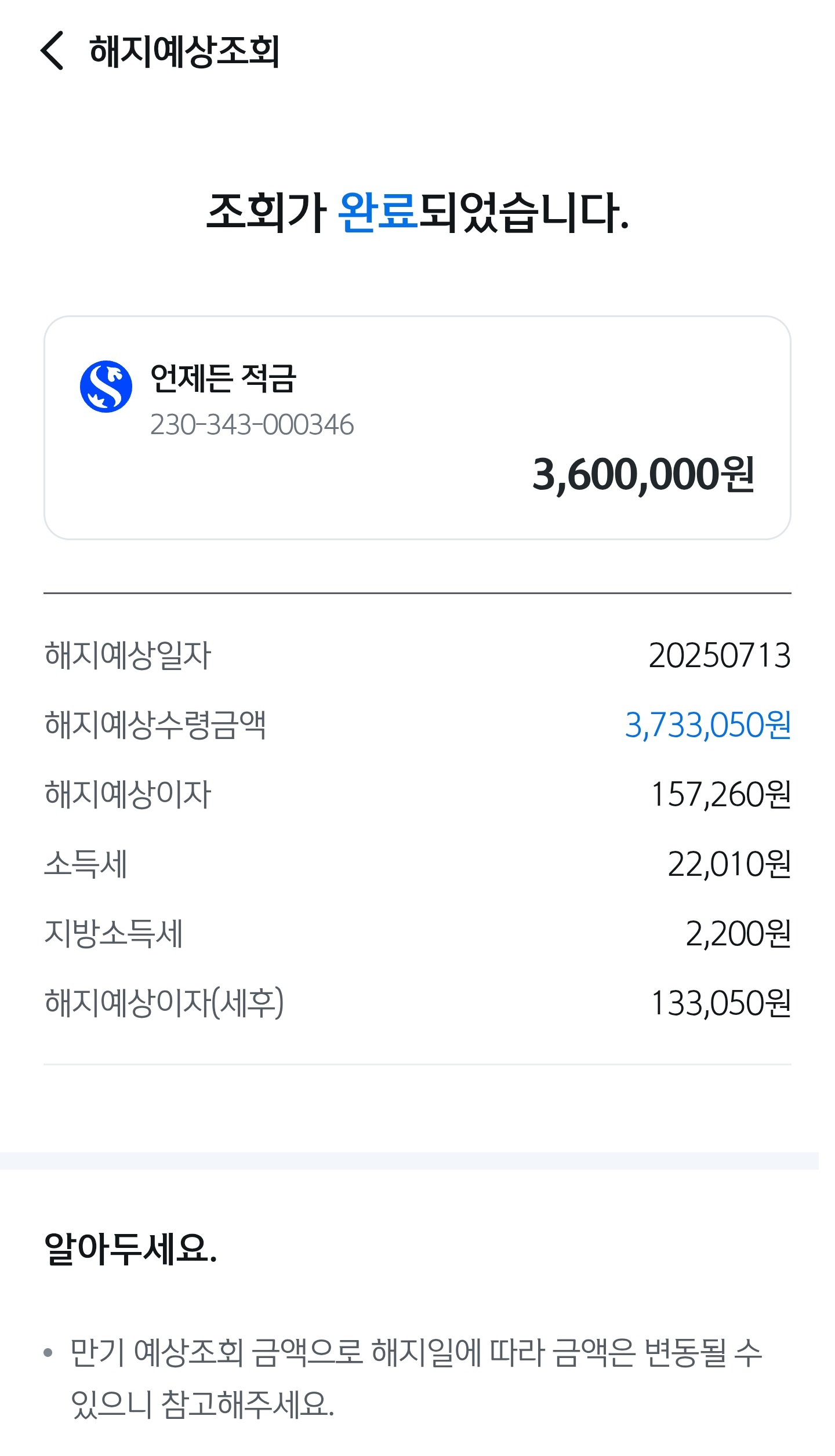 만기가 오늘 07월13일 신한은행앱에서 해보니, 바로 만기 해지를 할 수 있어서 만기해지하고 받았음.