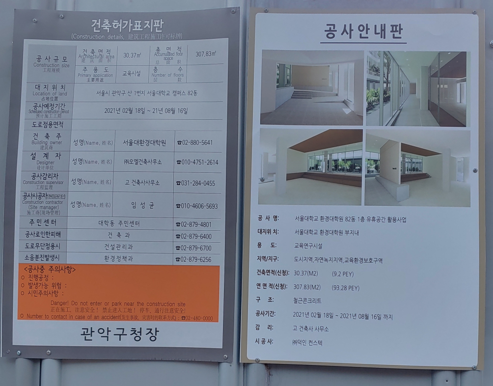 여기는 물건만 두고 환경대 1층을 손본다는 이야긴지. 헷갈림. 공사금액은 역시나 알려주지 않는다!