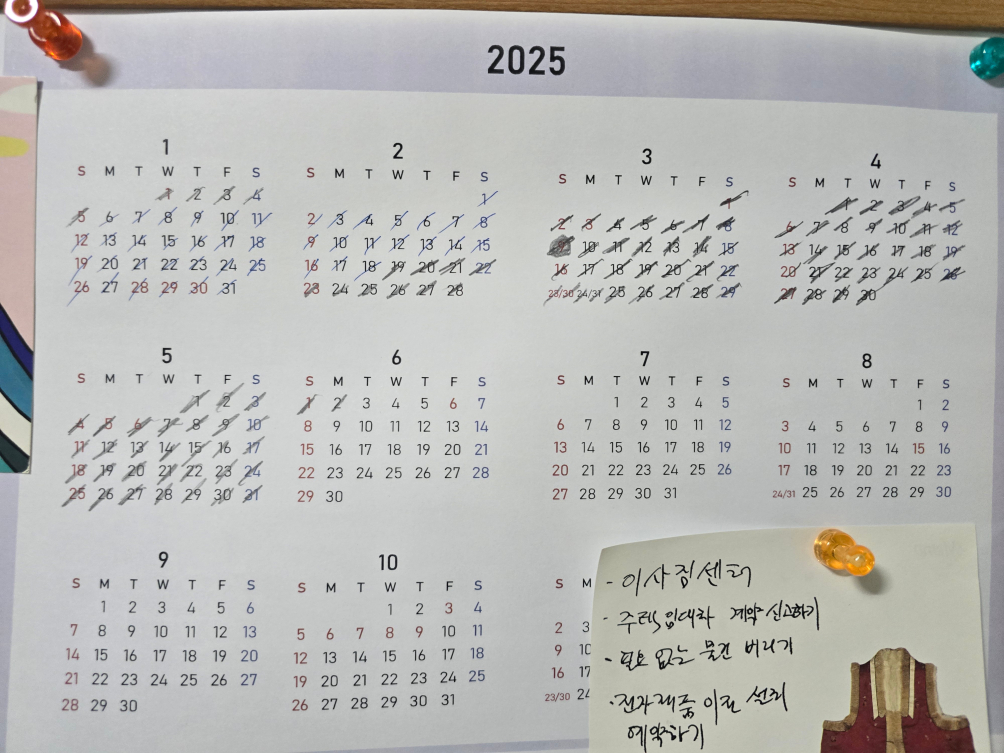 이사 준비에 바쁜데, 이제 보니 나온 캘린더 빗금은 6월 2일로 끝!