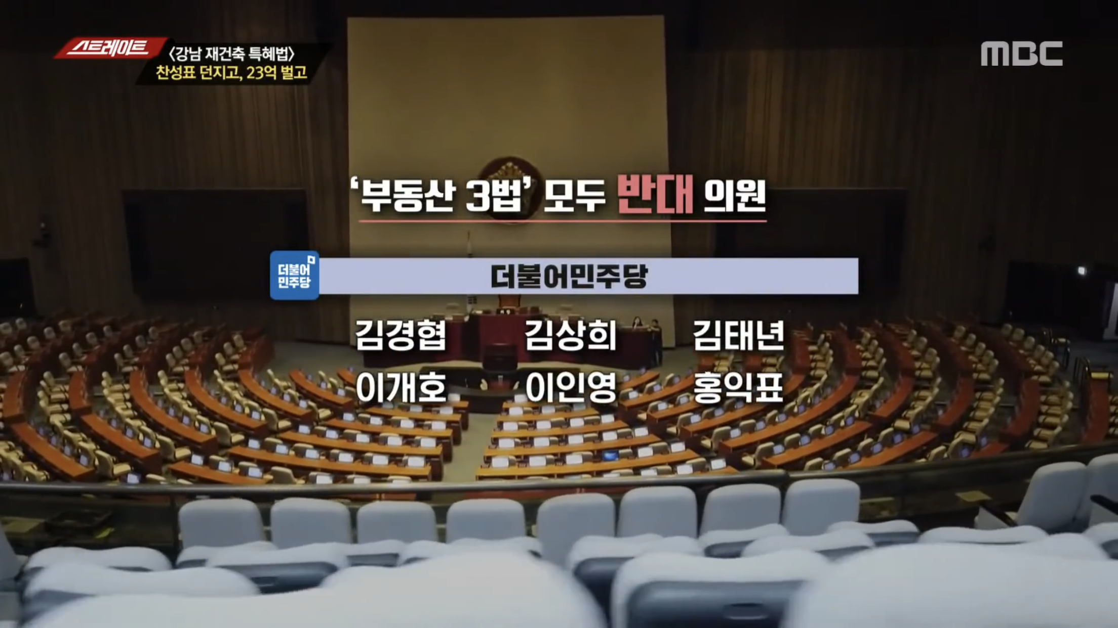 강남 재건축 특혜법 '부동산 3법' 모두 반대 의원