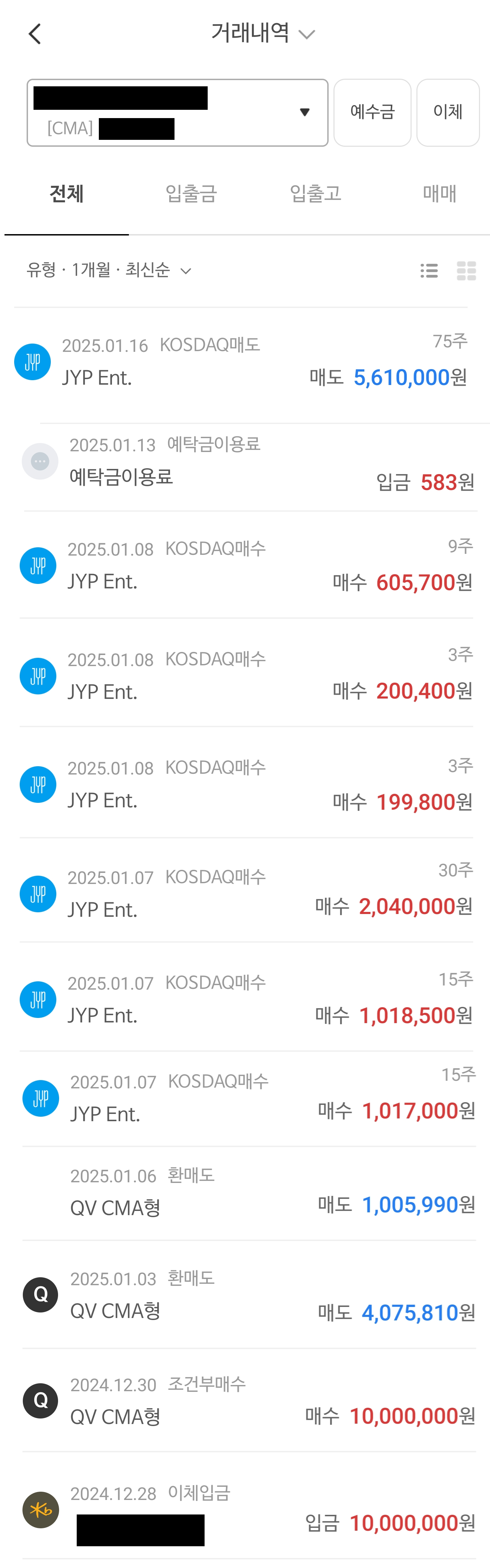 천만원을 12/28일 입금해서 1월16일까지 JYP Ent. 만 거래했습니다. 더 오르는게 보였지만, 순이익금 526,740원 이익금 보관 통장으로 이체했습니다. NH 나무증권 이용중입니다.