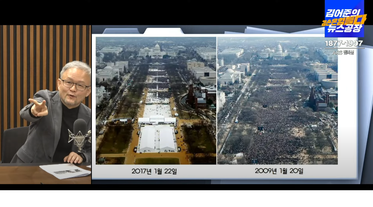 왼쪽 트럼프 취임식 참가자가 적다는 것을 아는 사람도 묻는 의도를 알았기에 사실로 답하지 않고, 왼쪽이 더 많다는 현문에 우답을 해버린 사태가 21세기 버젓이 일어나고 있음에... 사진을 보면, 오른쪽 오바마 취임식 참가자 수를 가지고 비교 조차 할 필요가 없는 것에...  많다고 우기는 사람이 많다는 말에!!