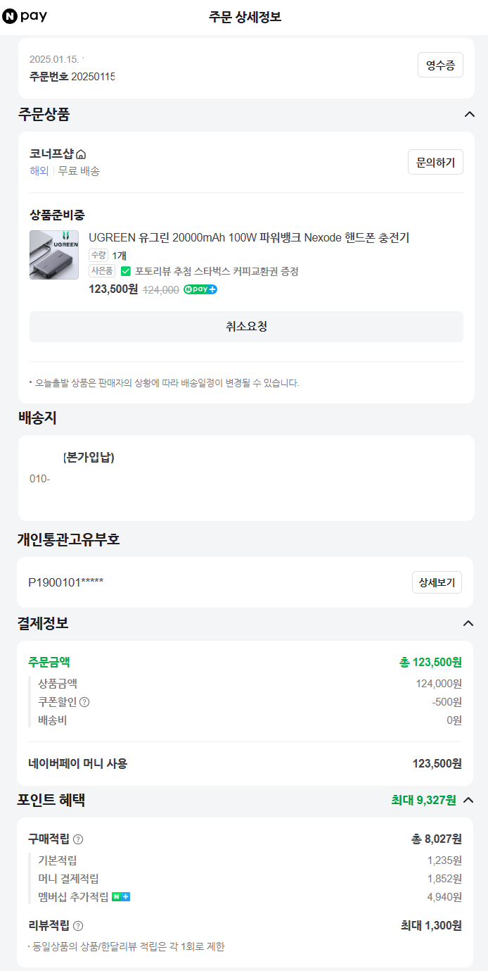 어머니 댁에 있어서 어머니 관세번호로 주문 완료 했네요.
