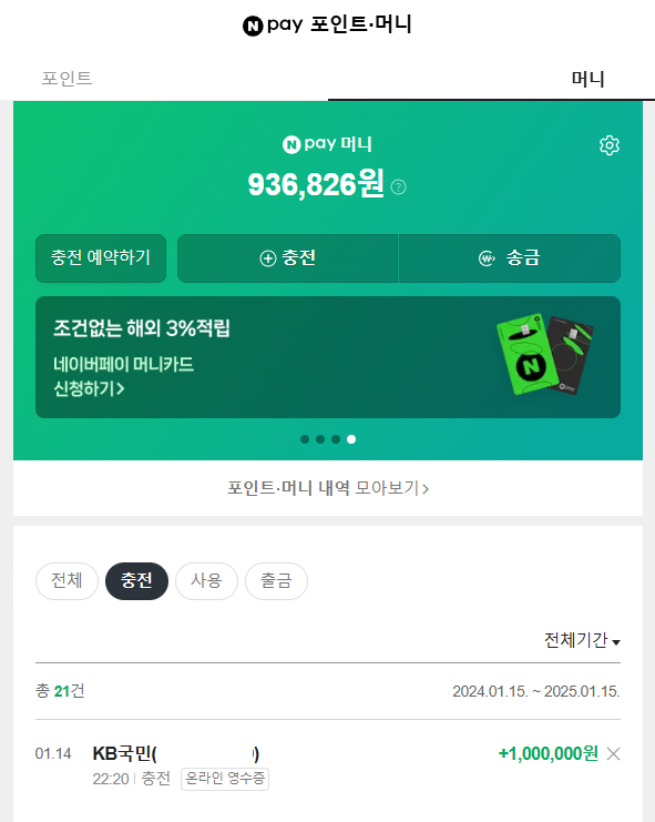 네이버 충전 후 체포 기념 지름 할 생각을 했음. 새벽 5시에 모이라고 했으니... 하지만 어제 충전할 때는 무의식해 해뒀던 것 같음.