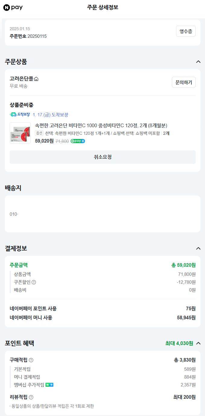 중성비타민C라 적립금 빼면 55000원정도에 구입했으니, 만4천원대!로 비싸지만, 해외제품으론 먹어봤는데.
