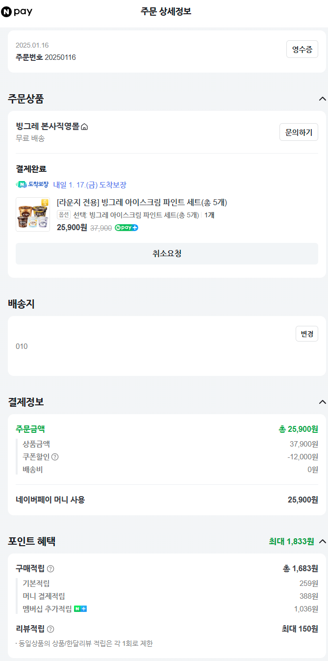 3. 빙그레 아이스크림 파인트 세트 25,900원(1833원 적립)