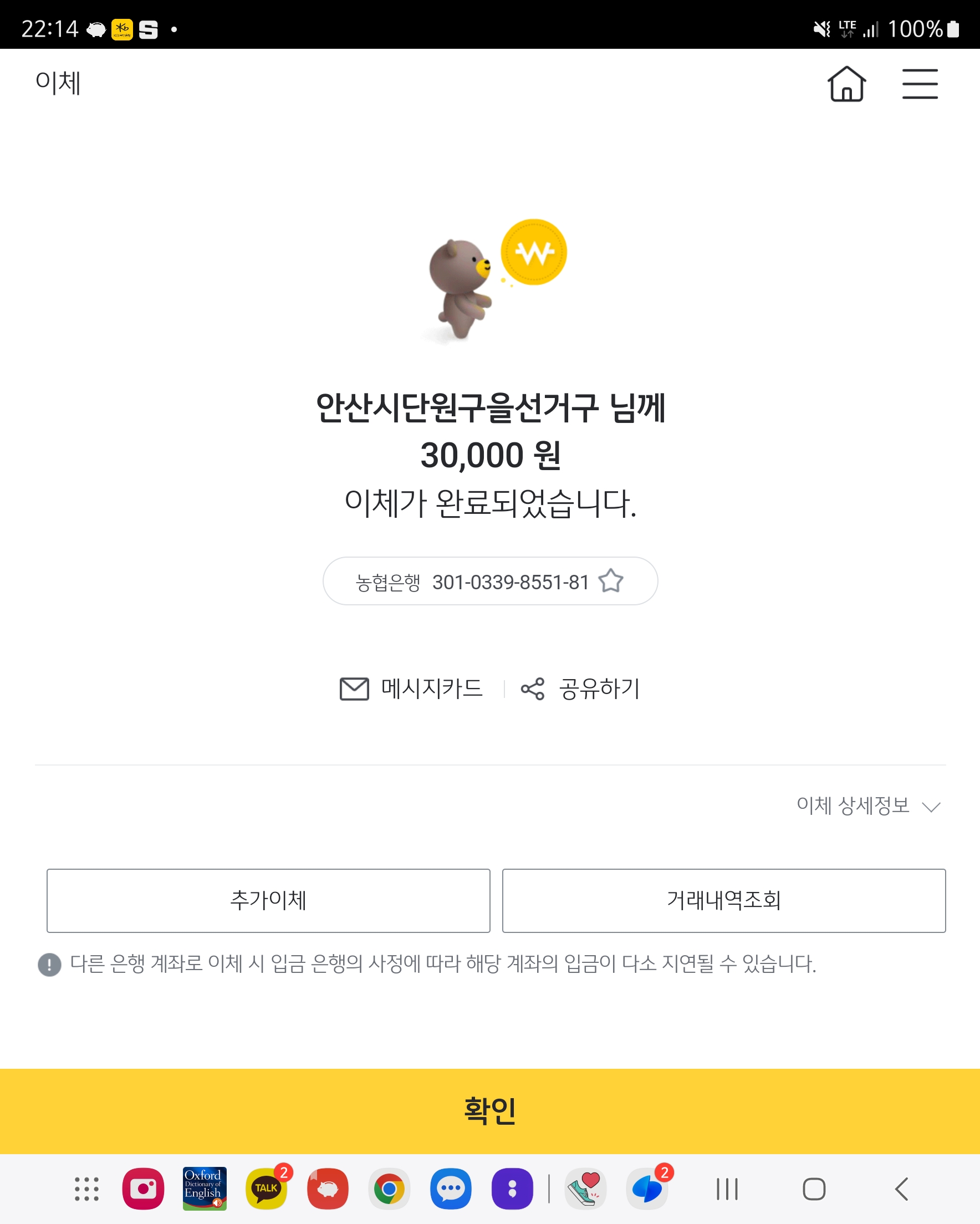 우연히 유튜브를 연결했는데, 후원 계좌가 보여 5만원씩 하려다,