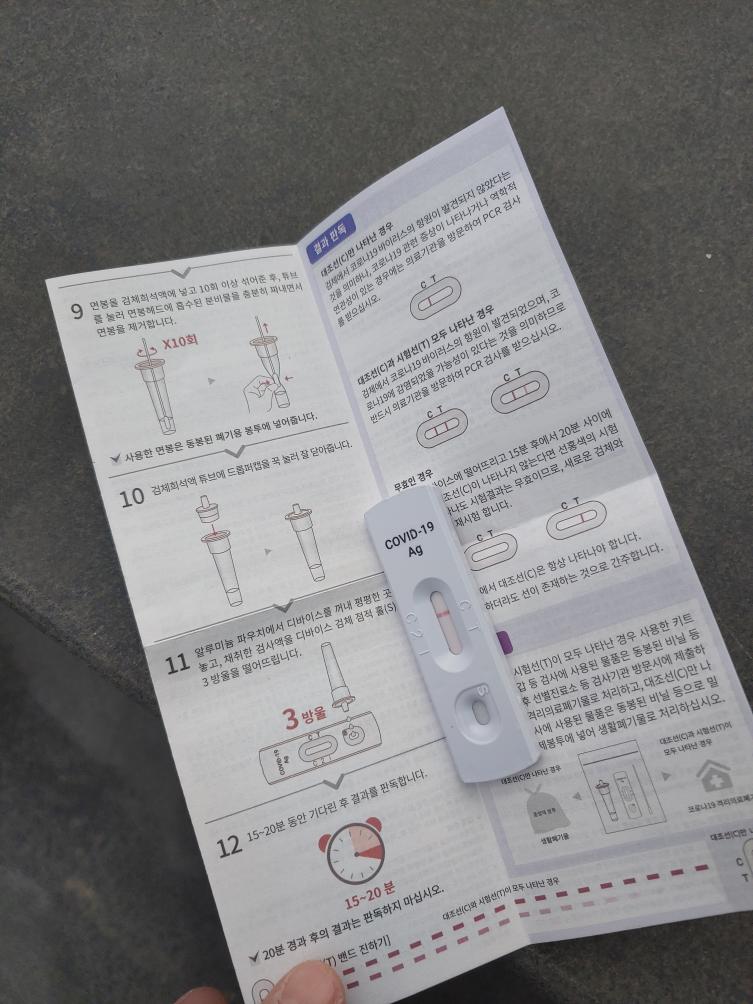아침에 일어나니, 콧물이 많아서, 찝찝해서 CU에서 검사키트 2개 8000원 하는 것을 구입해서 체크 무감염!