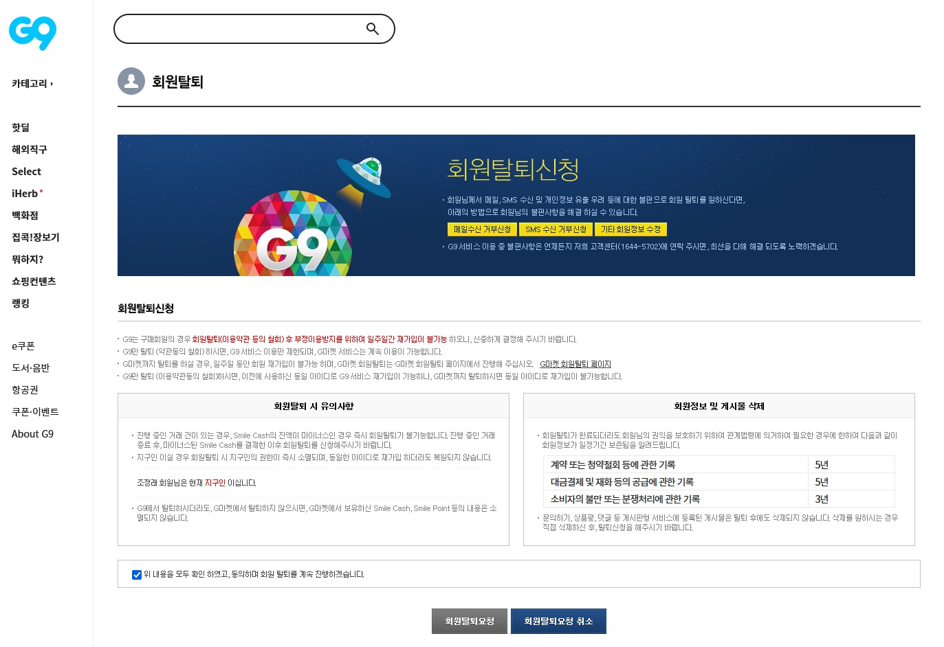 gmarket, g9, auction도 탈퇴했습니다.