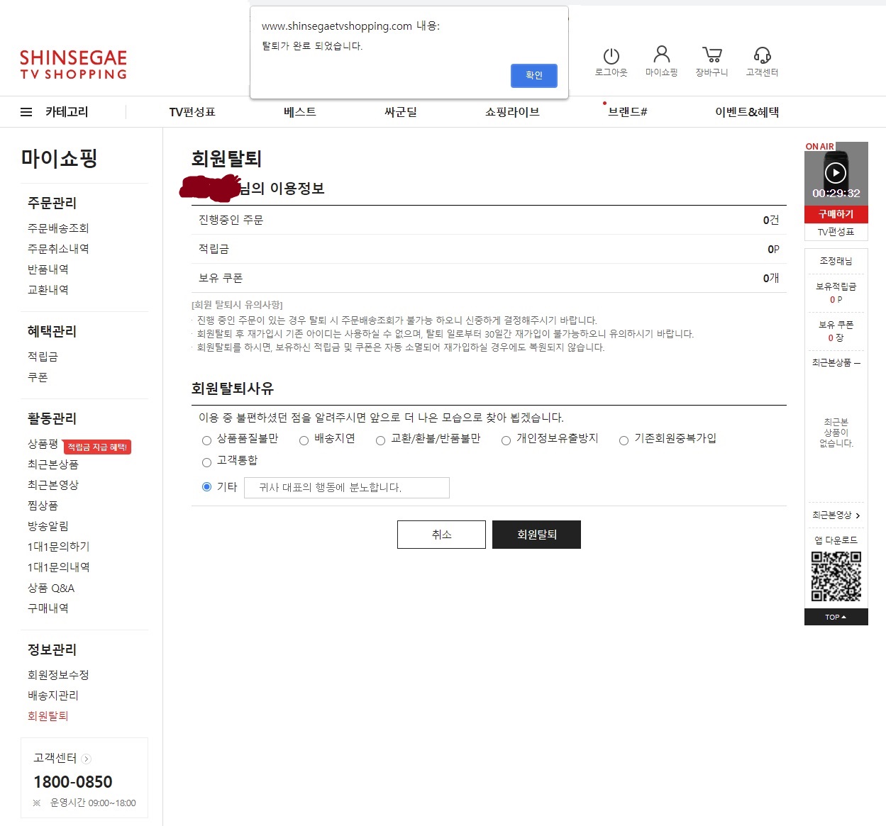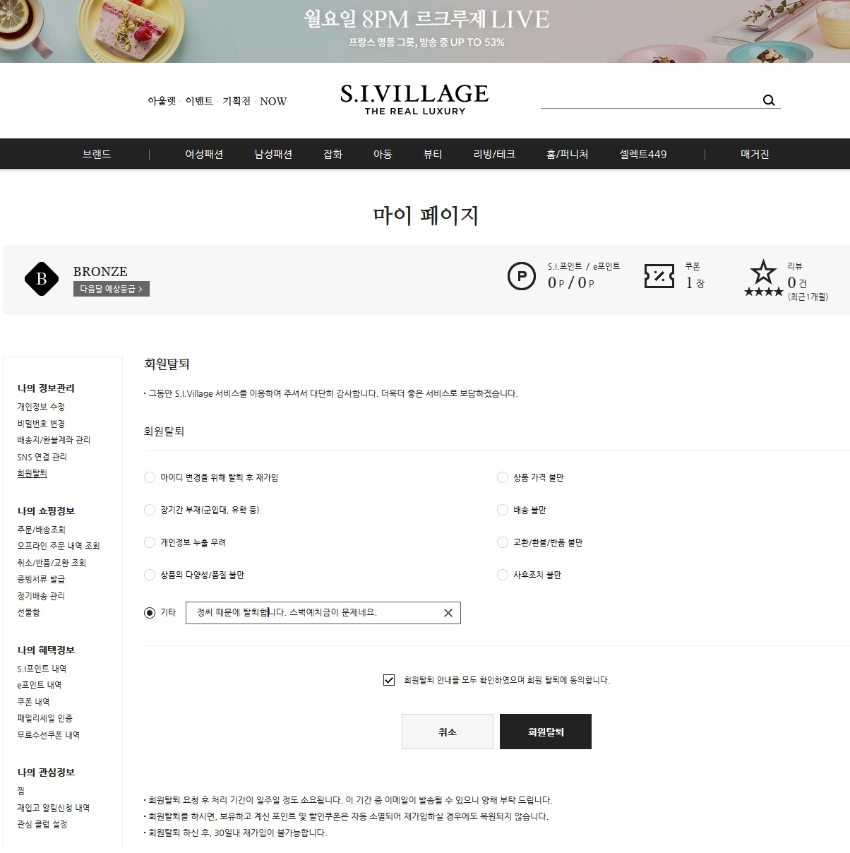 ** 역시 그룹이라 탈퇴할 때가 많네요. 빠진 게 있나 하나하나 체크하며 이번 기회에 이용하지 않는 사이트 탈퇴도 해야겠다 마음먹었습니다! 다 끝난 줄 알았는데 신세계tv쇼핑 앱도 있더라구요. 이것까지 탈퇴했습니다.