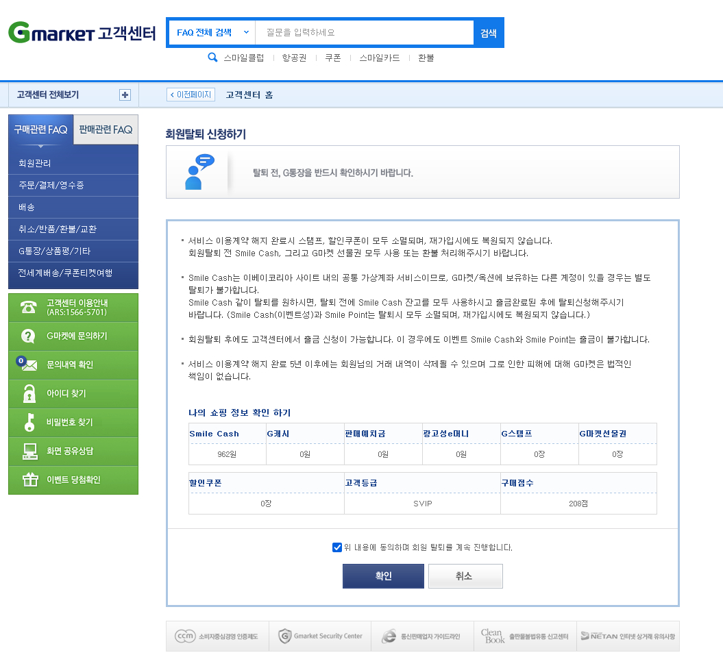 gmarket, g9, auction도 탈퇴했습니다.