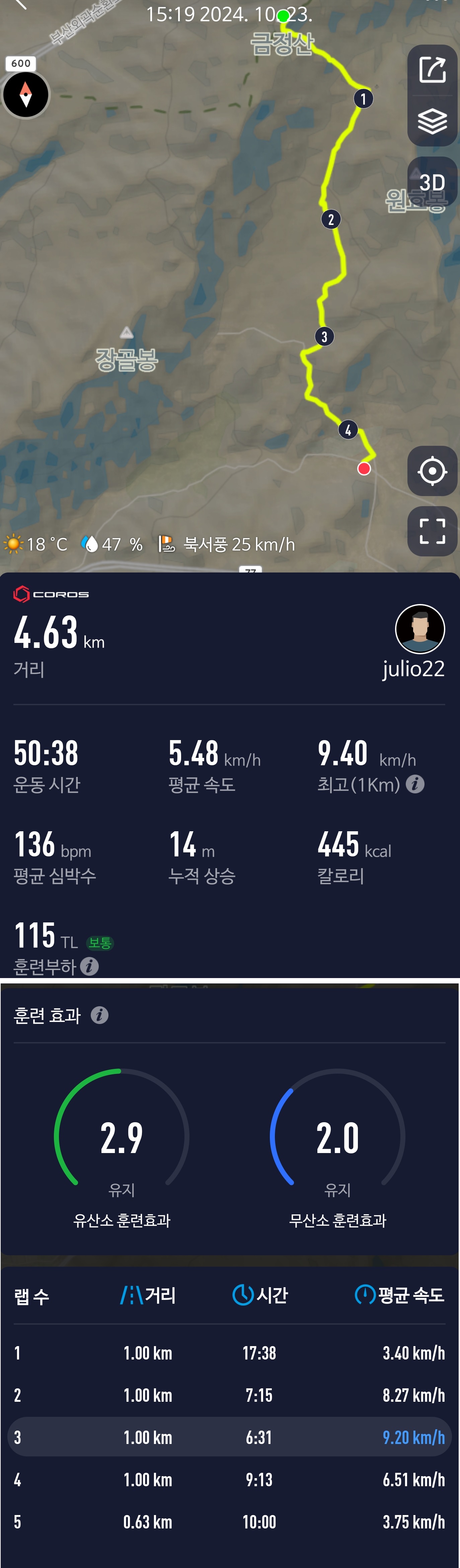 맥도날드에 가서 빅맥 라지세트 하나 먹고, 출발! 파워에이드 하나 배낭에 넣고, 걷기 시작! 코스북을 열면 안내코스가 보이고, 그 코스를 따라가야 되는 것 같음. 그렇게 장대로 오르다가 경로를 벗어났다는 말에, 기록 인정 안될까봐 내려와 안내대로 금정산 고당봉 오름. 트랭글 앱 실행시키다가 모두 종료후에도 남아 있을 줄 알았는데, 다시 실행시켜 보니 시간이 가지 않음! 그렇게 종료후 다시 시작해서 기록이 1시간40분대였는데, 내가 맥도날드 앞에서 정상까지 2시간 정도 걸렸고, (장대 길로 벗어난 시간이 대략 5분 정도 됨). 거기서 공해마을 카페까지 50분 정도 걸렸고, 거기서 커피 마시고 책 좀 읽다가 달려서 32분 만에 보건소 도착!