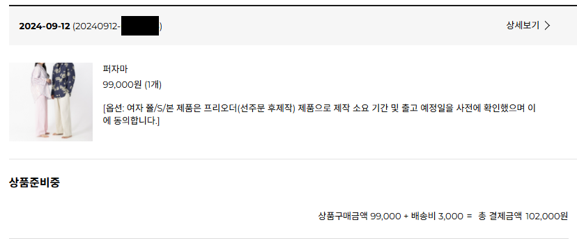4] 겸손 퍼자마 - 면100% 아니여서 어머니 선물로 전체 분홍색보단 이런게 더 멋질 것 같아서..주문 완료!