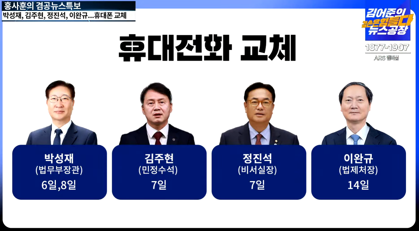 *안가4인방 폰교체 이상민, 박성재, 이완규 (가족은 해외 여행중), 김주현 민정수석(검찰 출신)