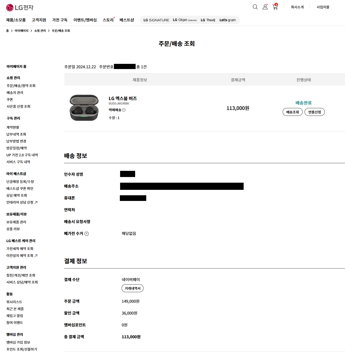 113,000원 구입한 LG xBoom Buds 잘 사용중이었는데, 1만원 Npay 포인트 받았음.