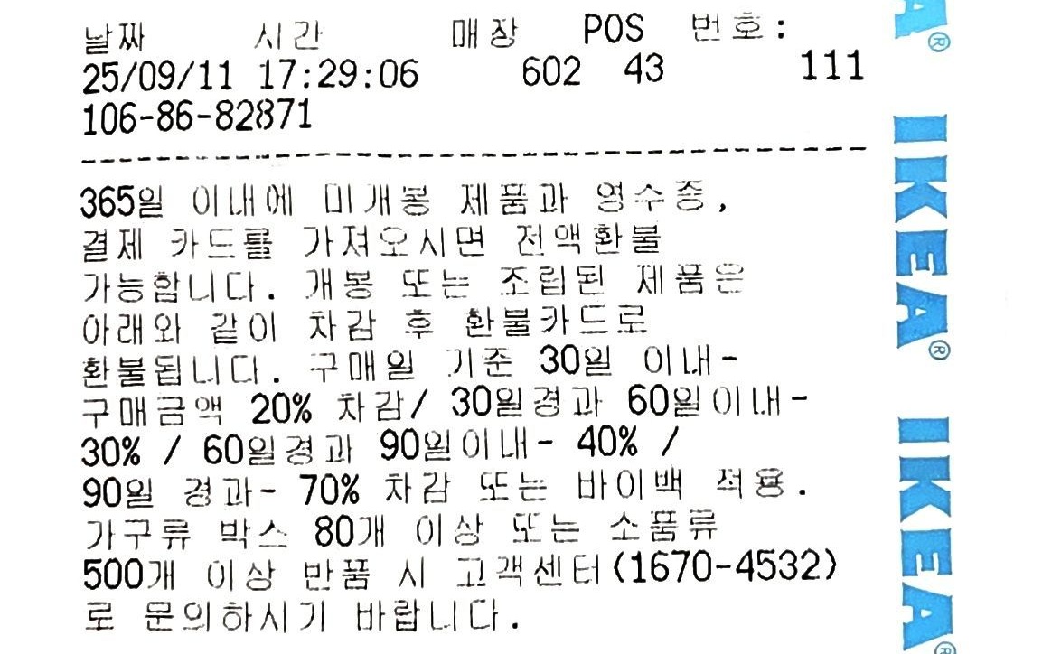 이케아는 이케아 대로 좋은 환불규정이 있어서 구매에 망설이지 않아도 좋을 듯.