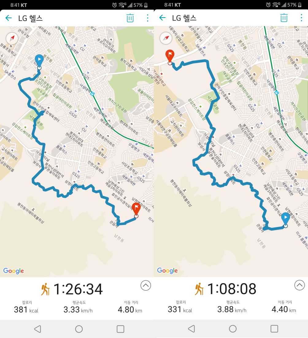 lg헬스 앱의 트래커를 켜니 정확한 지도정치까지 보여주네! 고도까지 보여주면 좋을텐데, 유료앱이 있으면 사용하고 싶은데, 우리나라는 지도사용 부분이 좀 애매해서 이게 될지 아닐지...