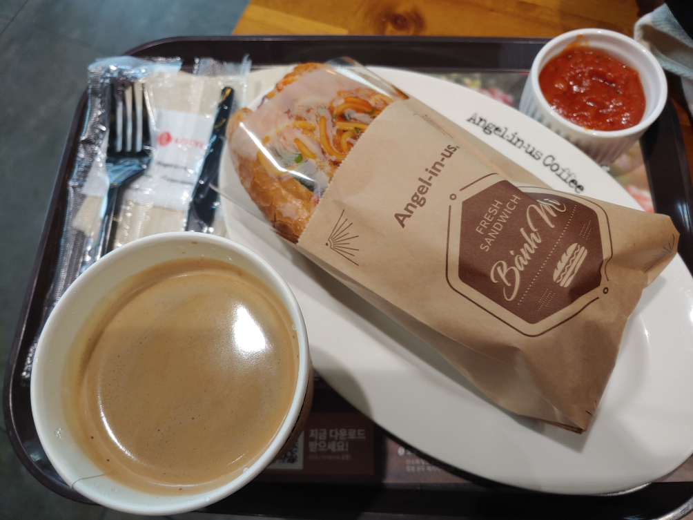 신림역까지 열심히 걸어가 엔제리너스 반미세트 먹고, 다시 걸어서 귀가. 엔제리너스 빵은 맛 좋음!