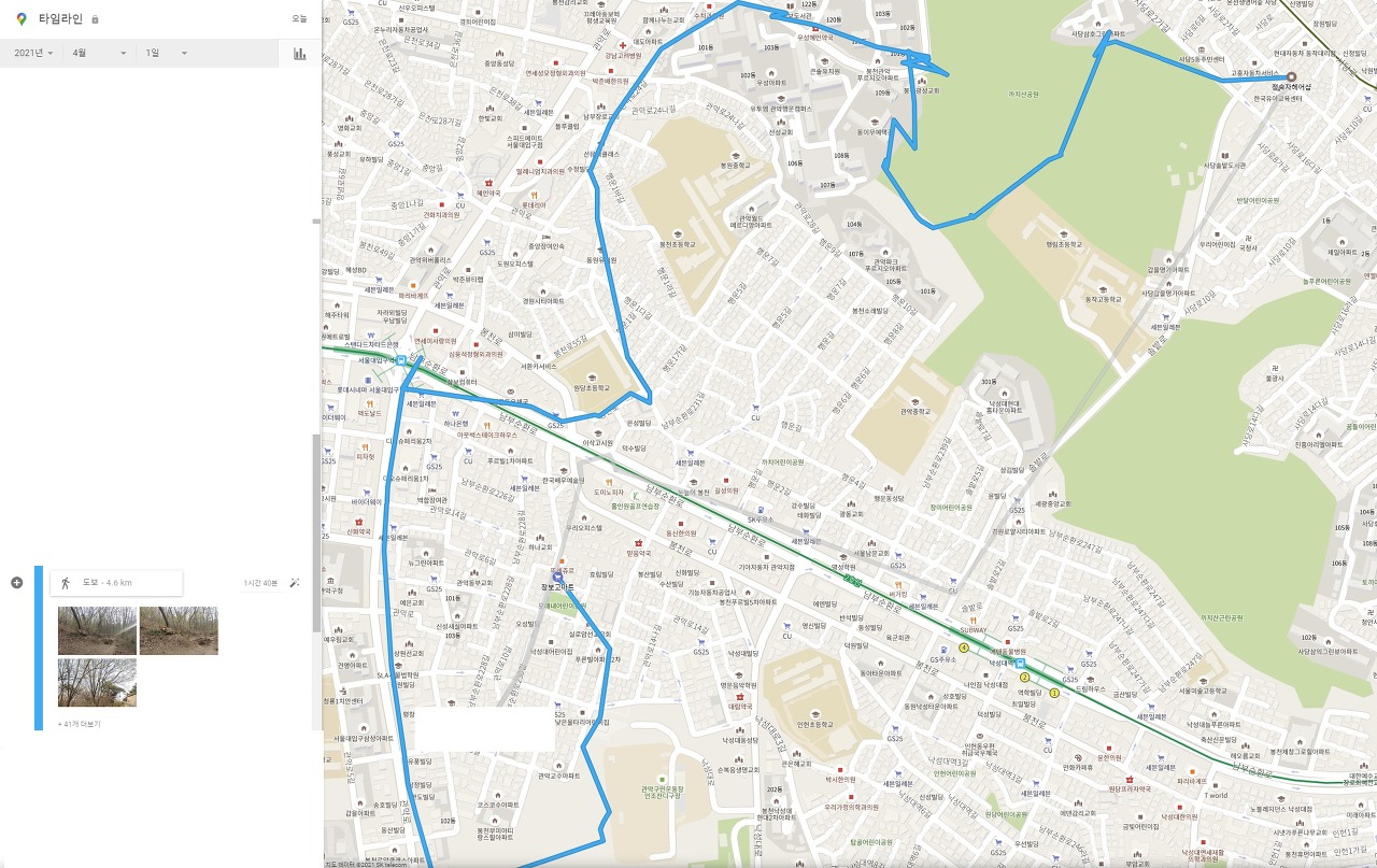 아래 오른쪽은 6시30분에 출발해서 관악산 일주문쪽에 있는 도란도란 코스 시작하는 곳까지 간것