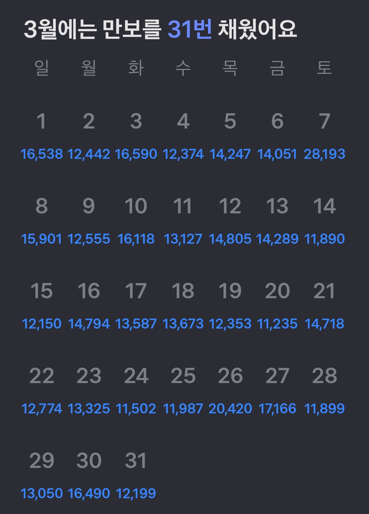 2026년 03월 31일 (화) 15,077 스쿼트99,푸쉬업39