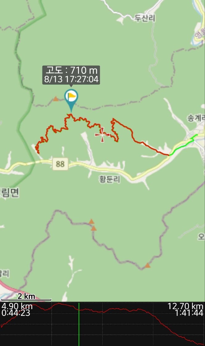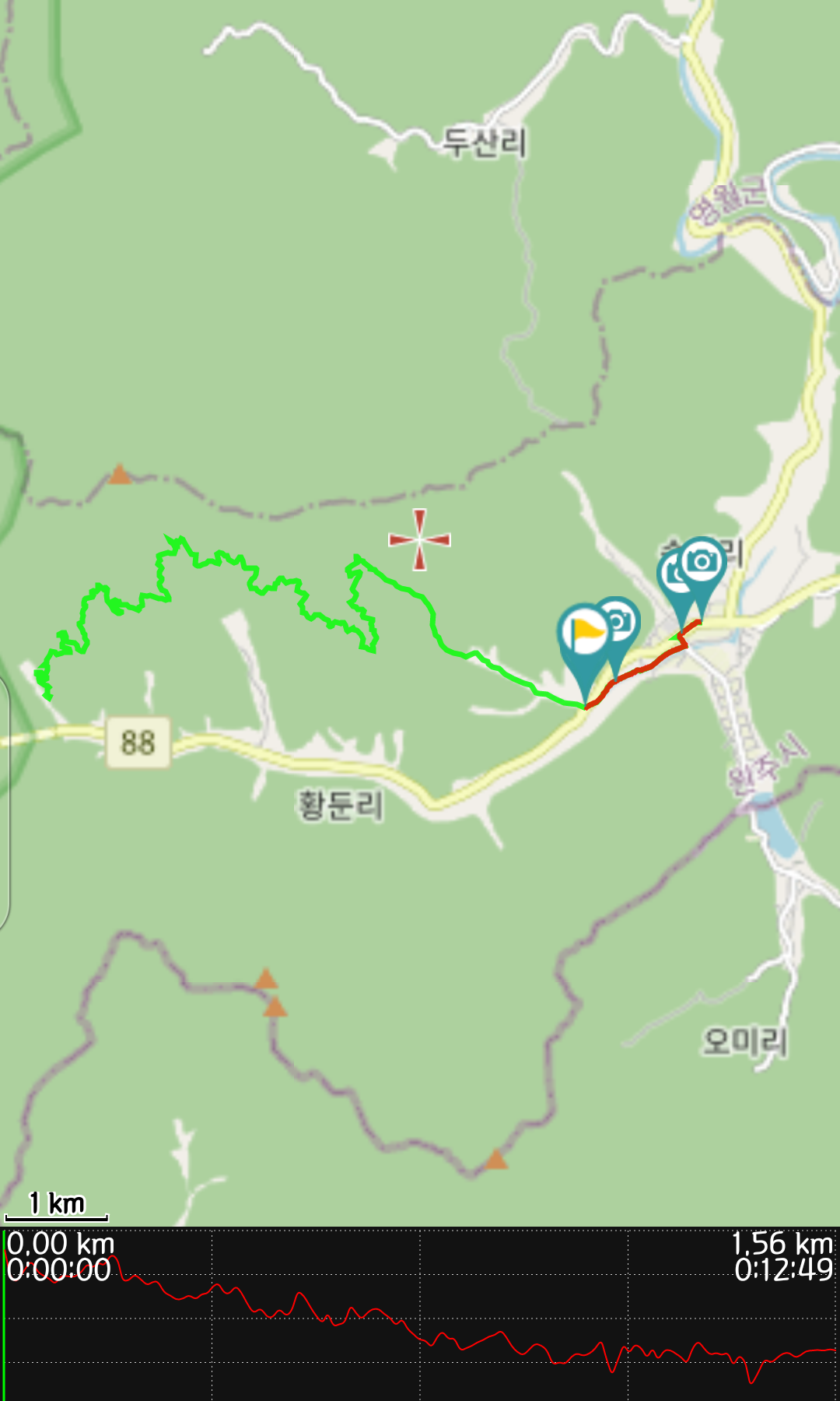 08:48~09:00(12') 소야버스정류장~황둔하나로마트 1.56 km