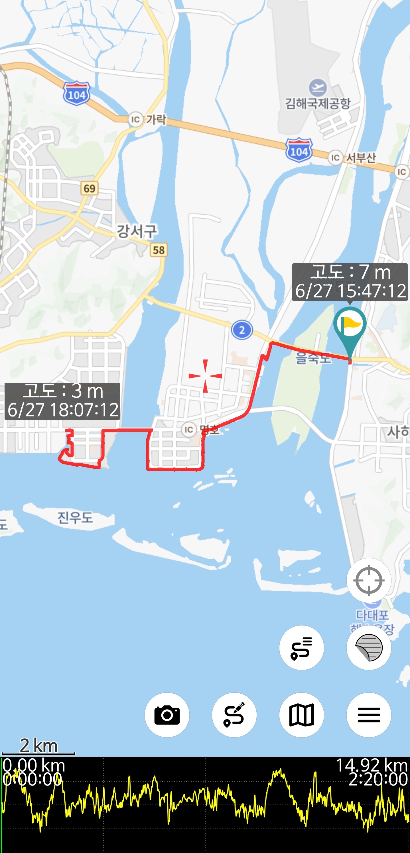 을숙도 안을 가보긴 해야 했으나, 하여튼 좀 지겨운 길인데다가 gpx 길은 그늘 없는 길이라 참 ... 그래서 중간 안에 있는 그늘로 천천히 달렸던 것 같다. 하여튼 1시간 36분만에 달렸던 길을 2시간 20분 걸려 달렸네! 존투 운동이라고 뺑기 치면 안될 듯^^;