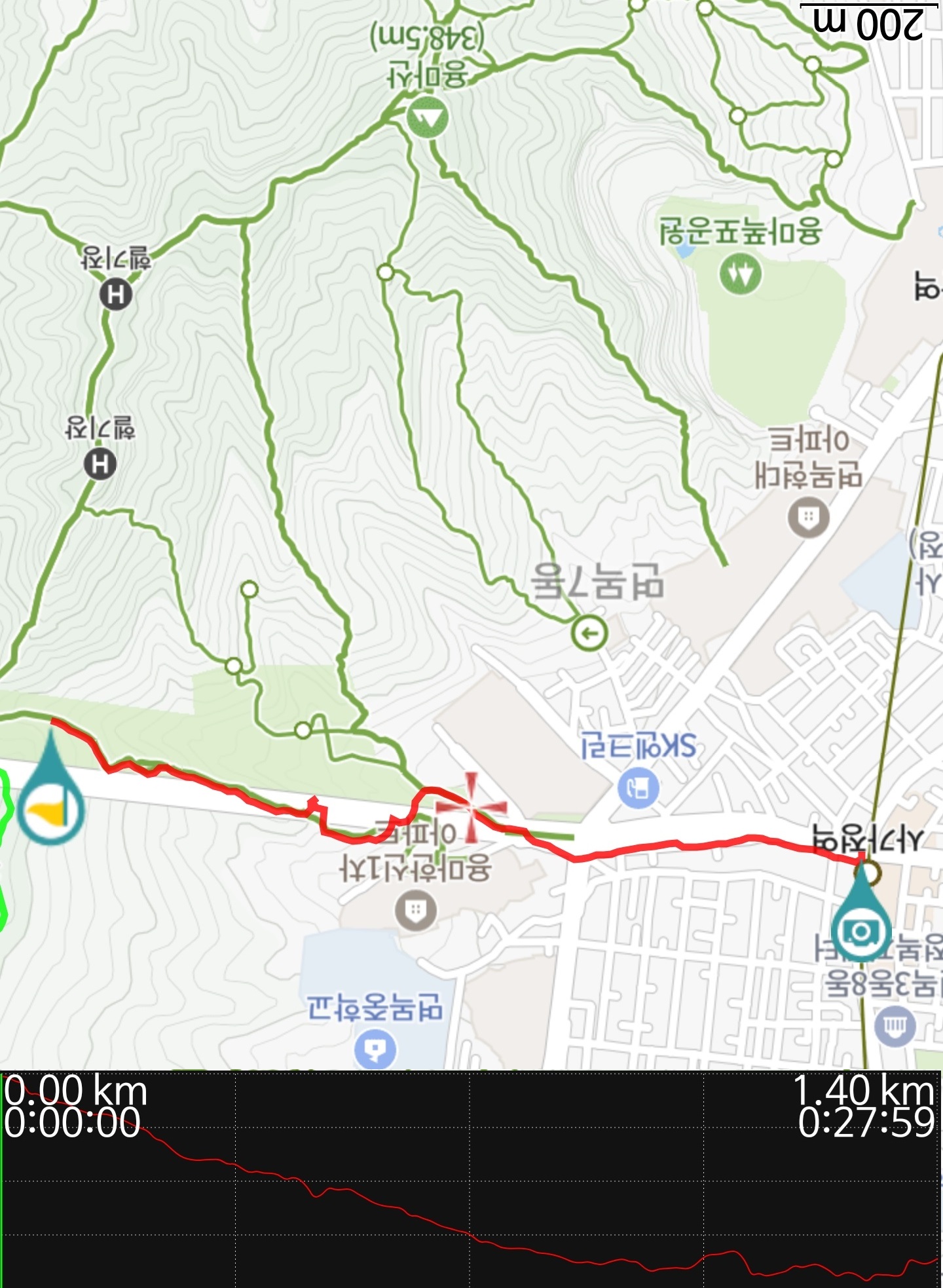 다만 4코스 끝나는 지점에서 사가정역까지 1.5km일 줄이야, 거기에 가파르기까지해서... 내려오는데도 대략 30여분 걸렸다. 4번코스 끝나는 점이 대략 능선에 올라서는 지점이라, 거기서 내려오니 1.40km 찍는 걸보고.. 아흐 다시 올라가는 것도 기록하고, 시계반대 방향으로 돌때는 이곳은 가능하면 가지 않을 계획!