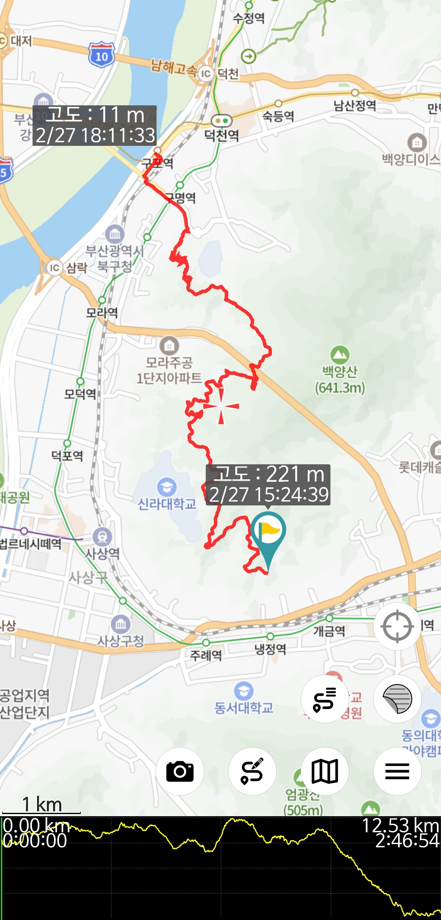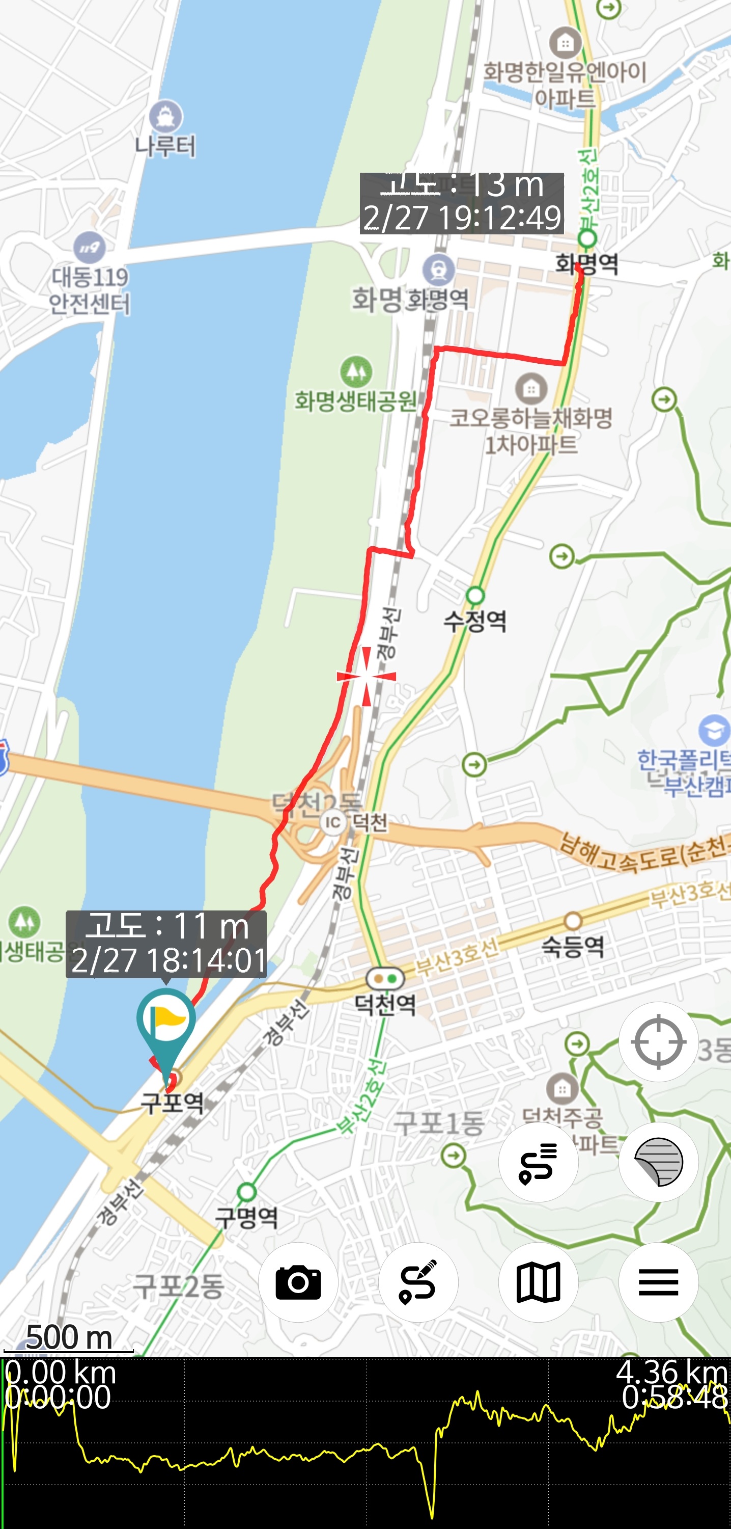 2월27일 밤6시14분에 도착해서 바로 걸어서 전철 화명역까지
