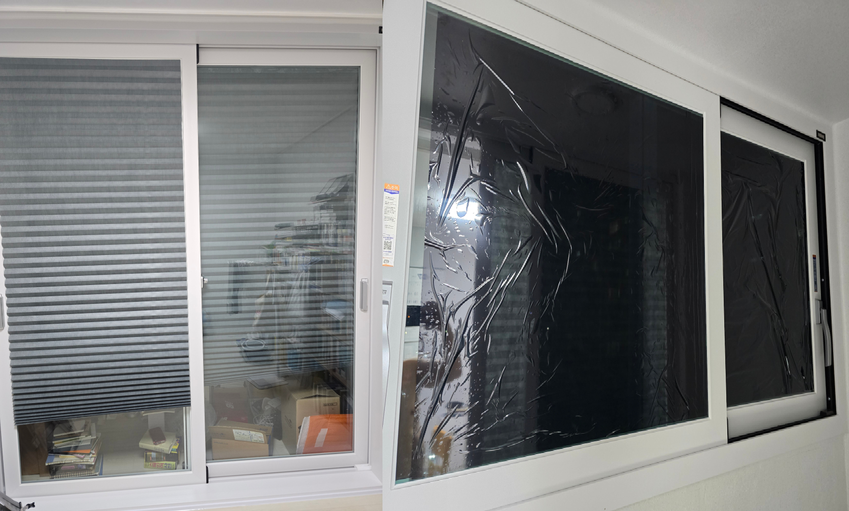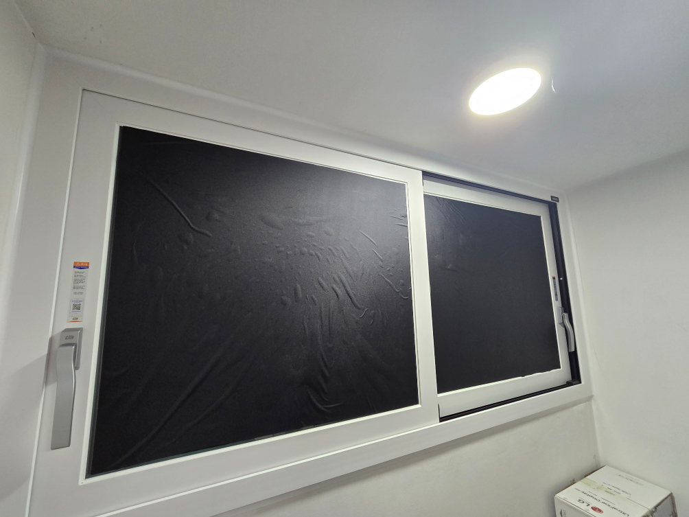 오늘 구입한 암막창문시트지는 무점착을 썬팅 필름을 떼고 바르면 될 것 같음.