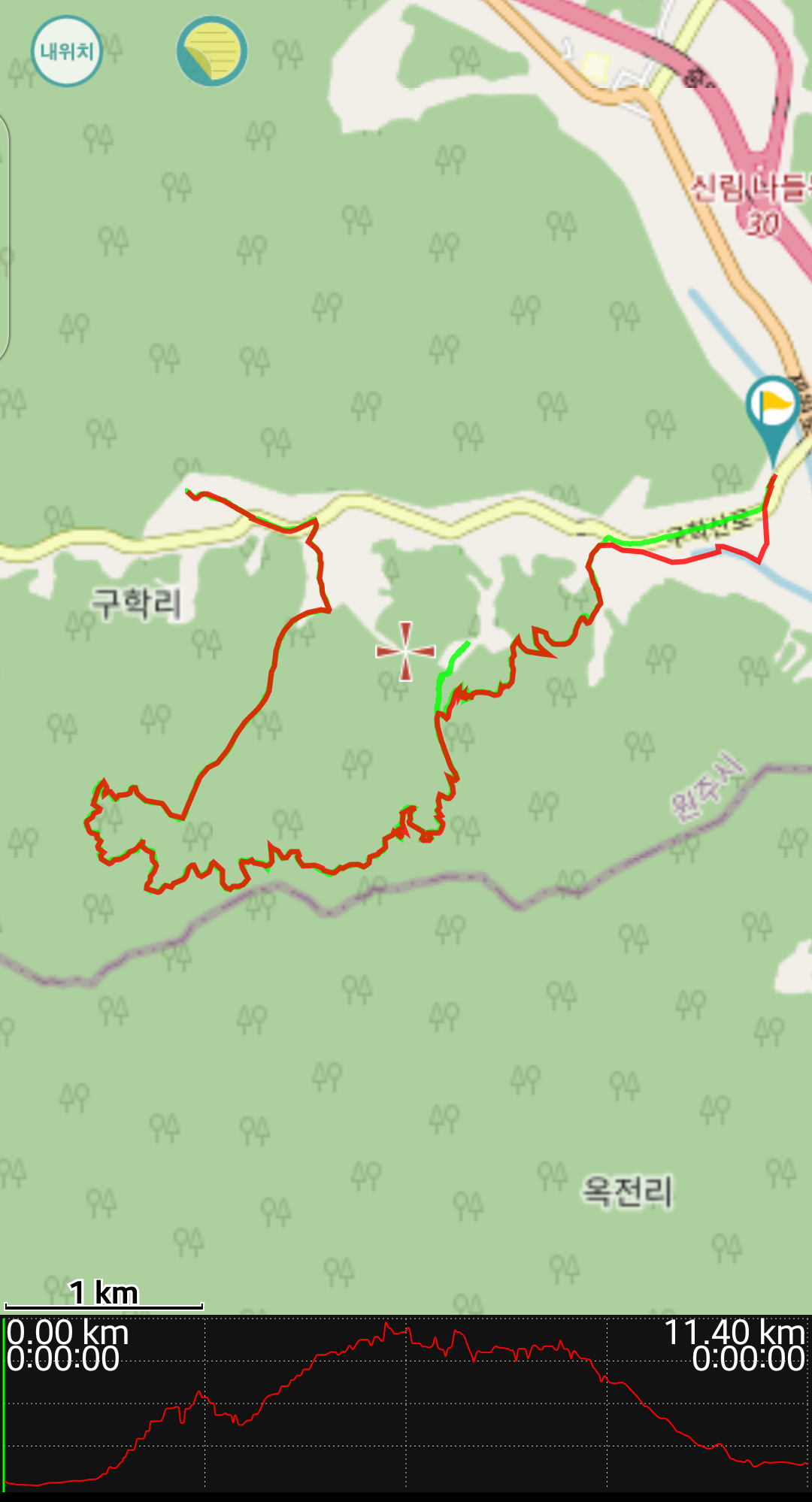 첫시작 구간이라 감회가 새롭다. 신기한 건, 시작 부분의 오르막이 마지막 부분의 쉬운 내리막으로 연결되었음. gps를 통해 잘못 간길을 확인했는데, 아흐 정말 많이 내려갔다가, 올라왔음. 그렇게 보다보니, 마지막 부분에 도로로 걸어버린 실수를 이번에야 알았음.