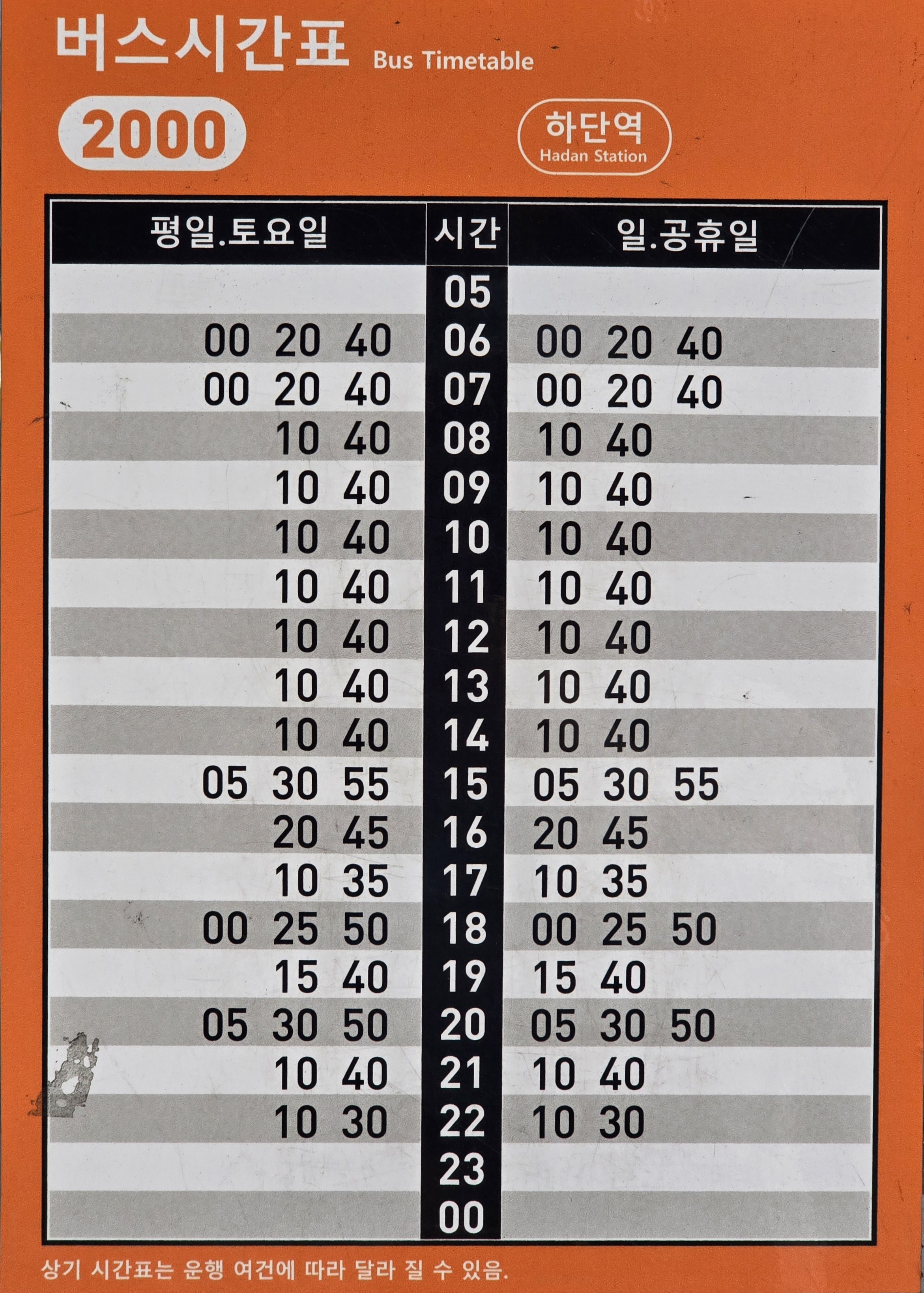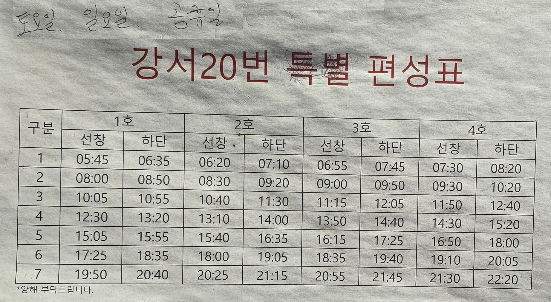 토, 일, 공휴일 버스 시간표 강서20번