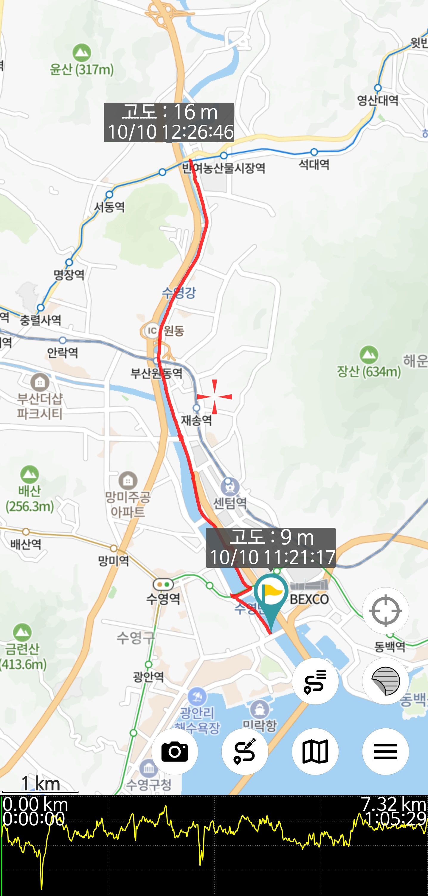 민락역(지하철)을 오는데 여러 호선을 갈아타지 않고, 한번에 왔다. 어제 예측했을때 보다 15분이나 짧게 걸렸다. 1시간 미만으로 도착. 시작인증대가있는 민락교에 가서 출발, 역시 이 근처는 조깅하는 젋은이들에 눈 호강, 다리 건너 마리나부터 천천히 달렸는데,. 전에 내려올 때도 평지이긴 했으나 이번은 훨씬 편했고, 역시나 걷기보단 천천히라도 달리는게 빠르긴 한게, 35분 정도 단축됐다. 그래도 인증대를 찾지 않아도 되서 지도를 자주 보지 않았던 것도.. 길 좌우를 다 보면서 아주 충실했다 싶다.