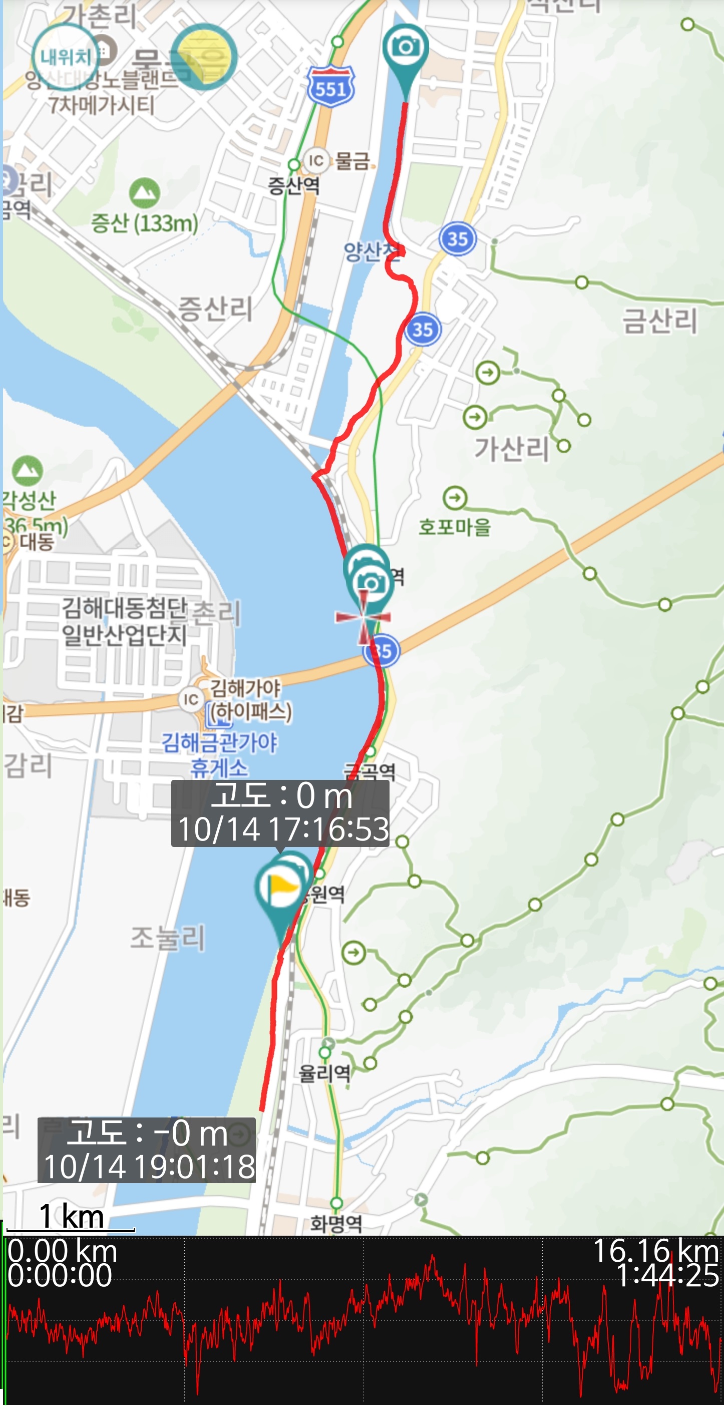 우천에 하천있는 곳은 작년 온천장에 돌아가신 분 이후로 관리를 정말 빡시게 한다. 그래서 출입문 폐쇄와 걷지 못하게 해서, 그냥 도로를 걷다 고민 하다 도로를 걸었다. 그렇게 걷다가 비가 안와서 다시 나가서 양산쪽으로 달렸음.